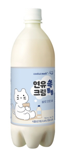 쿠캣 연유 쏙 크림 동동 막걸리는 시원한 막걸리에 우유, 연유, 크림 등 풍부한 유제품을 첨가한 '리얼 크림 막걸리' 제품이다.