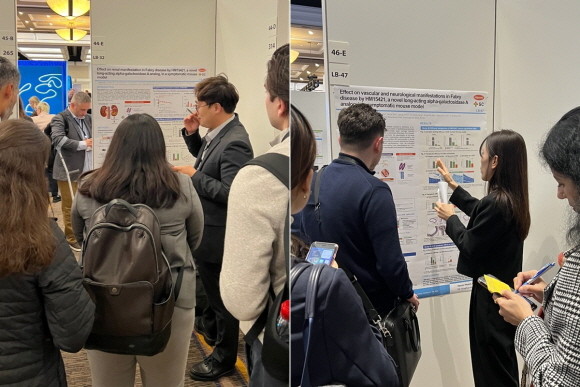 한미약품과 GC녹십자의 공동 연구로 주목받고 있는 '세계 최초 월 1회 피하투여 제형의 파브리병 치료 혁신신약'에 대한 주요 연구 결과가 전세계 희귀질환 분야 연구자들이 모이는 세계적 학회에서 발표됐다.