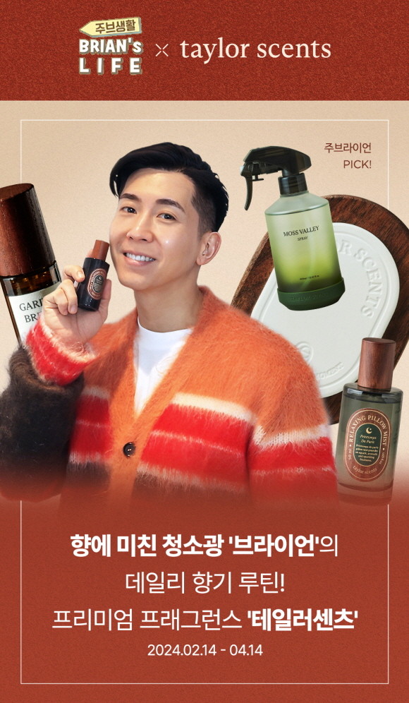 '테일러센츠(taylor scents)'가 브라이언과 손잡고 콘텐츠 커머스를 진행한다. 청소광으로 유명한 방송인 '브라이언'이 반한 향기·탈취 상품은 총 3종으로 테일러센츠의 '모스밸리 스프레이' '필로우 미스트' '카 디퓨저'를 뽑았다. 이에 힘입어 테일러센츠는 4월13일까지 CJ온스타일 앱과 카카오 선물하기에서 최대 40% 할인된 가격으로 판매를 진행한다.
