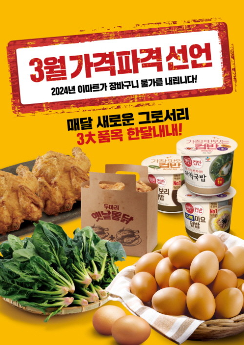 이마트는 3월에도 고객에게 가장 필요한 상품을 엄선해 '가격파격' 상품을 선보이며 압도적 가격을 바탕으로 '본업 경쟁력'을 강화한다는 방침이다.