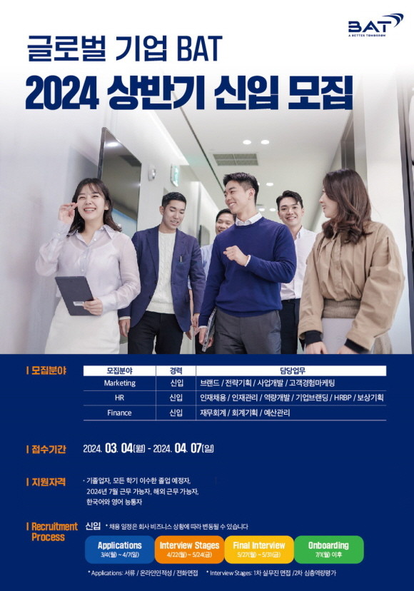 BAT로스만스가 오는 4월7일까지 '2024년 상반기 신입사원 공개 채용'을 실시한다. © BAT로스만스