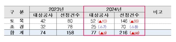 올해는 77개 토목·조경 공사에서 216건 자재와 공법을 선정할 예정이며, 이는 지난해 선정 계획 대비 △공사 건수 104% △선정 건수 137% 증가한 수준이다.