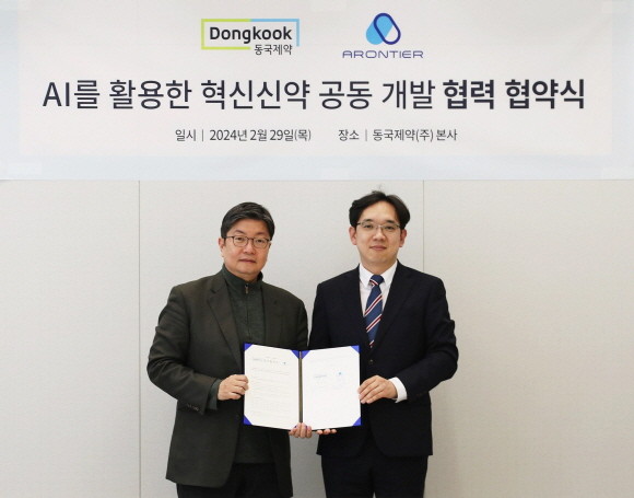 동국제약은 지난 2월 29일 강남구 청담동 본사에서, AI 신약개발 플랫폼 기업 아론티어와 'AI 기반 첨단의약품 개발 공동연구'에 대한 협약을 체결했다.