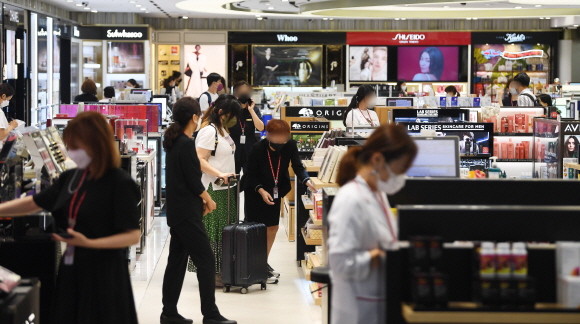 롯데면세점이 김포국제공항 출국장 면세점의 주류·담배 판매 구역 운영 새 사업자로 선정됐다. © 연합뉴스