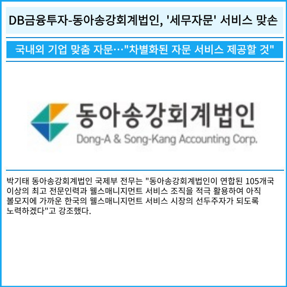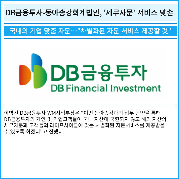 [카드] DB금융투자-동아송강회계법인, '세무자문' 서비스 맞손