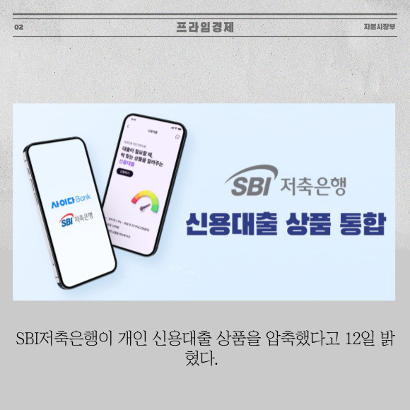 [카드] SBI저축은행, 개인 신용대출 상품 압축