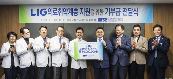 이번 기부금을 통해 순천향대학교 부속 서울병원은 의료취약계층을 위한 △치료비 지원 △예방진료 △건강검진 등 다양한 지원 프로그램을 운영할 예정이다. LIG는 의료취약계층 지원 기부사업을 지난 2021년부터 4년째 이어오고 있으며 현재까지 총 2억원을 기부했다.