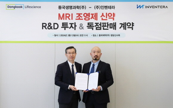동국생명과학이 MRI 조영제 신약개발 스타트업 인벤테라와 조영제 신약 독점 판매권 계약을 체결했다.