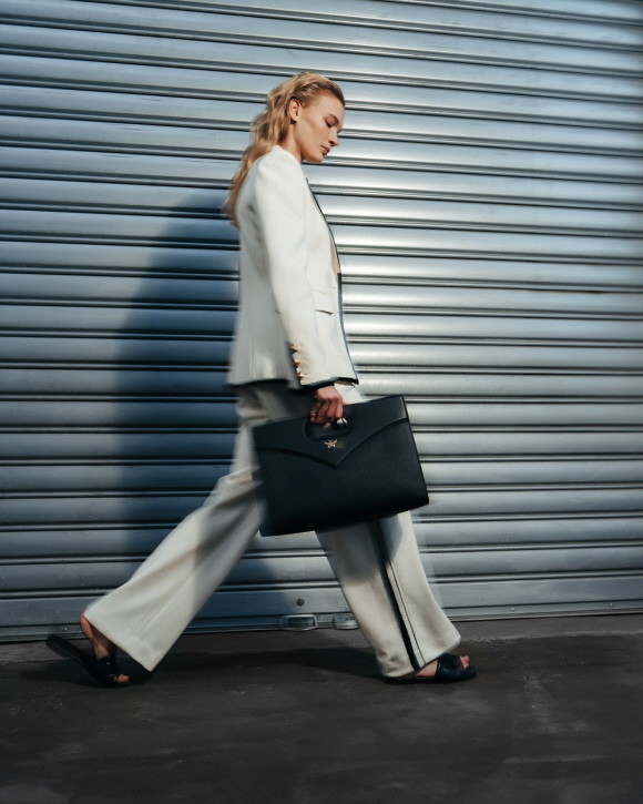 '스페니쉬 송아지 가죽 다이아몬드 숄더백' 역시 바이에른 다이아몬드에서 영감을 받은 스페인산 송아지 가죽 소재 숄더백이다. '형태는 기능을 따른다(form follows function)'라는 바우하우스 디자인 원칙에 충실한 기하학적 모티프가 앞면 플랩 클로저에 정교하게 퀼팅된 것이 특징이다.