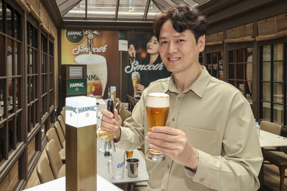 오비맥주는 26일 서울 강남구 신사동에서 '한맥 엑스트라 크리미 生' 생맥주 시음 행사를 열고 소비자 접점 확대 계획을 밝혔다.