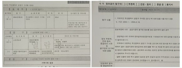 전민노는 "위치상 산212를 사용하지 못할 경우 나머지 필지만으로는 청소차 차고지 역할을 하기 어려운데, 산212를 점용사용하려면 공유수면 관리 및 매립에 관한 법률 제8조 제1항에 따라 관리청인 금정구에 허가를 얻어야한다"면서 "관리청인 금정구에 산212에 대해 2000년부터 2024년까지 '점용사용허가내용'을 정보공개청구했더니 점용사용허가내용이 없다는 통지를 받았다"며 국유지 부정사용 의혹을 제기했다.