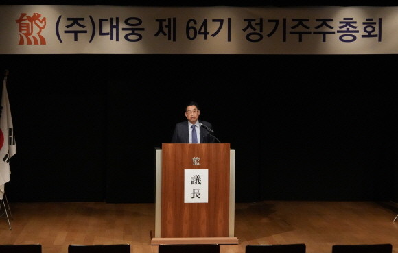 제64기 대웅 정기 주주총회에서 발언하는 윤재충 대웅 대표. © 대웅제약