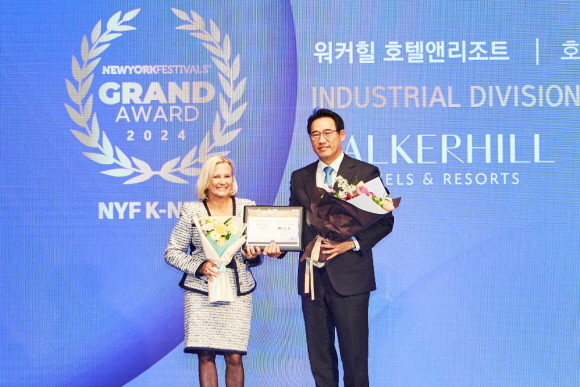 2024 국가브랜드대상 호텔&리조트 부문 1위를 수상한 워커힐 호텔앤리조트의 장진오 총지배인(우측). © 워커힐 호텔앤리조트