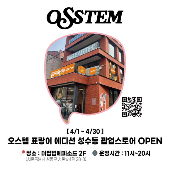 오스템파마가 서울 성수동에서 4월30일까지 '오스템 표랑이 에디션' 팝업 스토어를 운영한다.