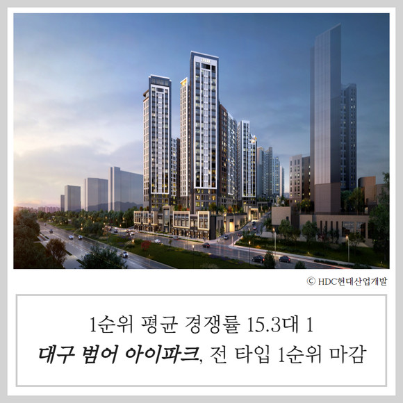 대구 수성구 범어동 일원에 선보인 HDC현대산업개발(294870) 대구 범어 아이파크가 2021년 이후 약 3년 만에 대구에서 두 자릿수 경쟁률을 기록하면서 전 타입 1순위 마감에 성공했다. 초역세권과 명문 학군·학원가 등 입지와 함께 아이파크 브랜드만의 다양한 혜택을 제공한 것이 주효했다는 HDC현대산업개발(이하 HDC현산) 측 분석이다.