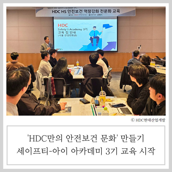 이번 전문화 과정은 HDC 세이프티-아이 아카데미(SAFETY-I ACADEMY) 3기 교육 일환으로 마련됐다. 안전관리자를 비롯한 △경영진 △현장소장 △관리감독자 △협력사 대표이사·안전관계자 등 1300명을 대상으로 안전보건 업무역량을 강화하기 위한 직무별 맞춤형 교육이다.