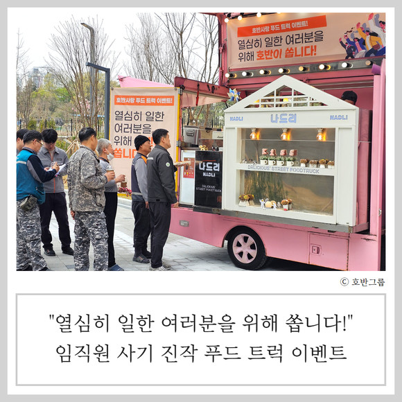호반그룹에 따르면 임직원들을 위해 '호반사랑 푸드 트럭 이벤트'를 진행했다. 이는 각자 업무에 최선을 다하고 있는 임직원에게 감사와 응원의 마음을 전하기 위해 마련했다.