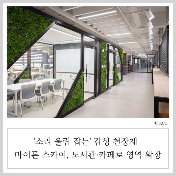 KCC(002380) 흡음 기능성 감성 천장재 '마이톤 스카이(Mitone Sky)'가 도서관, 카페 등에 시공되며 영역을 넓히고 있다.