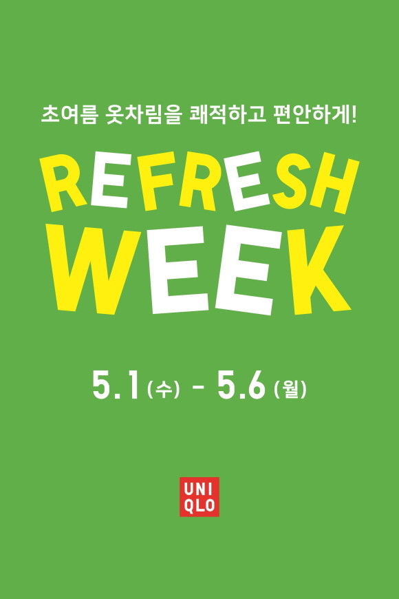 유니클로(UNIQLO)가 5월1일부터 5월6일까지 6일간 '리프레시 위크(REFRESH WEEK)' 특별 프로모션을 실시한다.