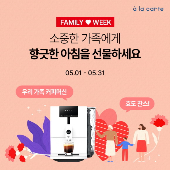 이와 함께 전국 17개 백화점 매장에서는 가정용 커피 머신을 2대 동시 구매 시 머신별 최대 30% 할인 혜택을 제공한다. '알라카르테' 카카오톡 채널 추가 시 발급되는 5만 원 할인 쿠폰을 매장에 제시하면 즉시 추가 할인을 받을 수 있다.