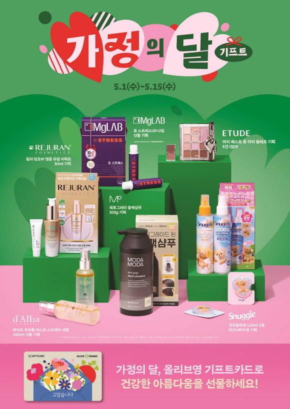 먼저 올리브영은 오는 15일까지 전국 매장과 공식 온라인몰, 모바일 앱(App)에서 선물에 특화된 200여개 상품을 선별해 특가에 선보이는 '가정의 달 기프트 프로모션'을 진행한다.