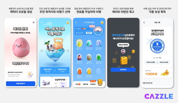 롯데헬스케어의 미션 수행 건강관리 서비스 캐즐 에어의 가장 큰 특징은 MZ세대에게 익숙한 모바일 게임 형식을 차용했다는 점이다. 여러 사용자와 함께 비행기를 타고 미션을 해결하며 목적지까지 무사히 도착하는 것이 기본 컨셉트다. 이번엔 첫 시작으로 '체중관리' 테마를 적용해 선보였다. '건강관리를 즐겁게 한다'는 플랫폼 철학에 맞게 식단 기록 중심인 일반적인 다이어트 앱과 차별화를 뒀다.