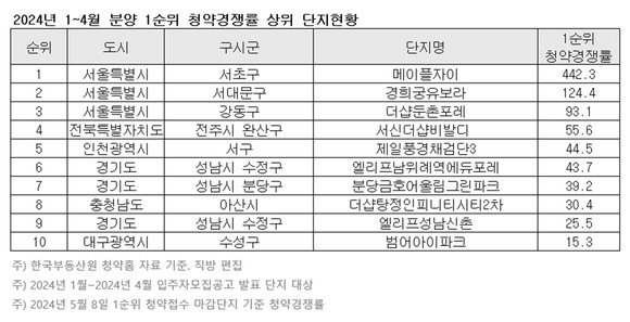 업계 관계자는 "올해 경쟁률 상위 10개 단지 중 7개 단지는 수도권일 정도로 수도권 분양 관심이 여전히 높다"라며 "다만 수도권‧지방 여부가 아닌 향후 차익 실현가능성과 입지적 장점이 청약 성적을 가릴 주요 요소"라고 분석했다.