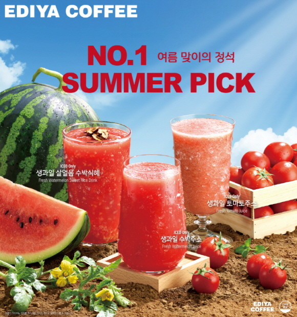 이디야커피가 생과일 음료 3종(△생과일 수박주스 △생과일 토마토주스 △생과일 살얼음 수박식혜)을 오는 23일부터 선보인다.