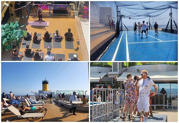오전에 참여할 수 있는 요가를 비롯해 11층에서는 바다를 바라보며 농구 경기도 열렸다. 대부분의 승객들은 오전 뜨거운 햇살에 수영장에서 수영을 즐기거나 선탠을 하는 등 한가로운 시간을 보내는 모습이었다.