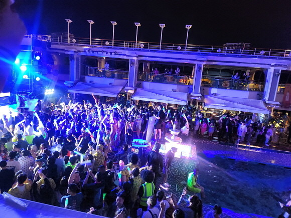 출항 후 메인 스테이지인 '크라운 스테이지'에서는 댄스 음악 아티스트 '아크레이즈'(Acraze)와 1일차 헤드라이너 '옐로우 클로'(Yellow Claw) 등이 새벽 내내 화끈한 공연을 진행했다. 이외에도 '루나 라운지' '판 티스코' 등에서도 EDM 파티가 열렸다.