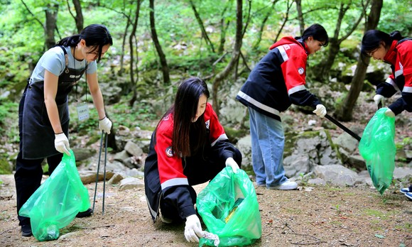 티웨이항공 봉사활동 동호회의 자원봉사자들이 플로깅 활동을 하고 있다. ⓒ 티웨이항공