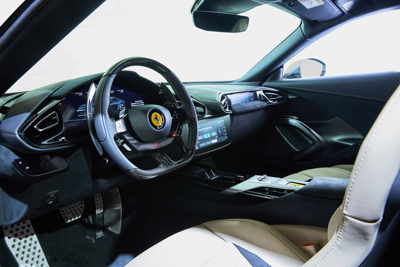 차체와 매끈하게 결합되며 볼륨과 존재감을 줄인 가로 블레이드형 주간주행등과 테일램프는 형태의 아름다움을 해치지 않으면서도 기능과 기술을 담아내는 페라리 스타일링 센터의 높은 수준을 보여준다. 여기에 윈드·리어스크린과 캐빈 프레임의 블랙스크린 효과를 통해 공상과학에서 영감을 받은 미래지향적인 디자인을 완성했다.