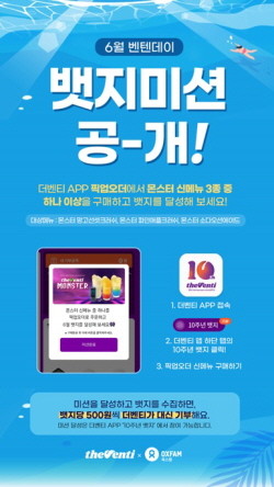 새롭게 선보인 여름 시즌 음료 '몬스터' 3종 중 하나 이상을 더벤티앱 픽업오더로 구매하면 뱃지를 얻을 수 있으며, 획득한 10주년 뱃지는 개당 500원씩 기부금으로 적립돼 캠페인 종료 후 참여자의 이름으로 옥스팜 코리아에 최종 기부된다.