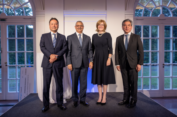 왼쪽부터 가네하나 요시노리 가와사키 중공업 회장, 산지브 람바 린데 CEO, 이바나 제멜코바 수소위원회 CEO, 장재훈 현대차 대표이사 사장. ⓒ 수소위원회