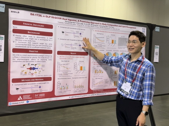 동아에스티와 자회사 뉴로보 파마슈티컬스는 지난 21일부터 24일까지 미국 올랜도 컨벤션센터에서 개최된 '제84회 미국 당뇨병학회에서 비만 치료제 'DA-1726'의 전임상 연구 결과를 포스터 발표했다. © 동아에스티