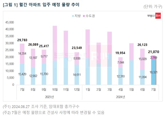 부동산R114)에 따르면 7월에는 전국 아파트 44개 단지 2만1070가구(수도권 2749가구·지방 1만8321가구, 임대 포함)가 집들이를 시작한다.
