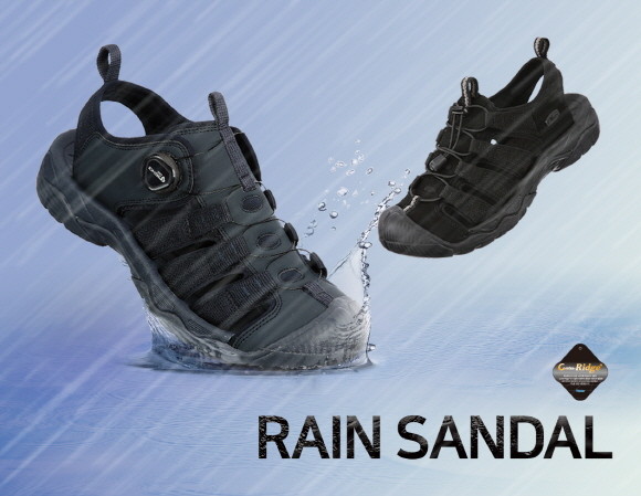 레드페이스가 뛰어난 접지력과 통기성으로 장마철에 유용한 남성용 레인 샌들 2종을 출시했다. © 레드페이스