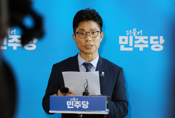더불어민주당 전당대회준비위원회 대변인인 정을호 의원이 28일 서울 여의도 국회에서 새 지도부 선출방식 등에 대한 회의 결과를 브리핑하고 있다. ⓒ 연합뉴스