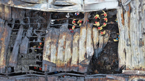 리튬전지 공장 화재 현장에서 경찰과 소방, 국립과학수사연구원 등 관계자들이 현장수색을 하고 있다. ⓒ 연합뉴스
