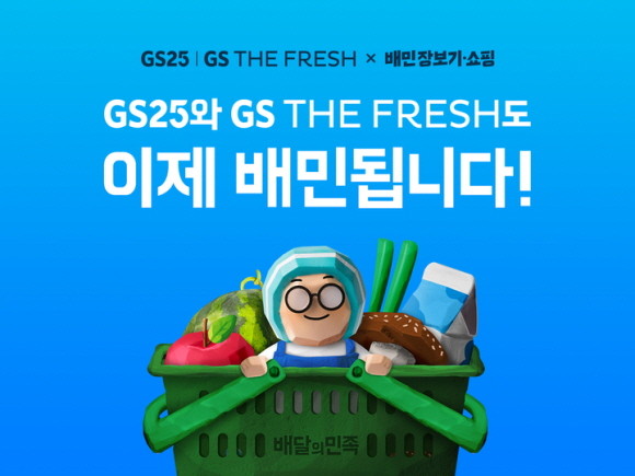 배달의민족을 운영하는 ㈜우아한형제들은 '배민 장보기·쇼핑' 서비스를 새롭게 선보이며 GS25와 GS더프레시를 추가 입점하고, 약 한 달간 쿠폰 및 할인 행사를 연다.