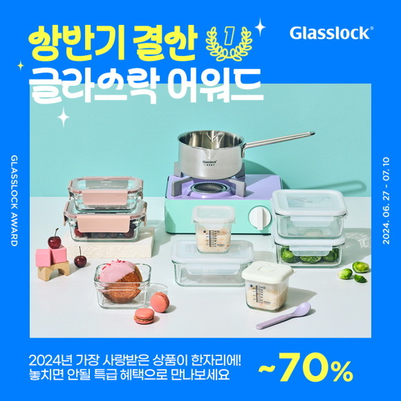 이번 행사는 올 상반기 동안 글라스락 공식몰에서 가장 많은 사랑을 받은 제품들을 선별해, 각 카테고리별 1위 제품들에 대한 혜택을 제공하고자 마련됐다.