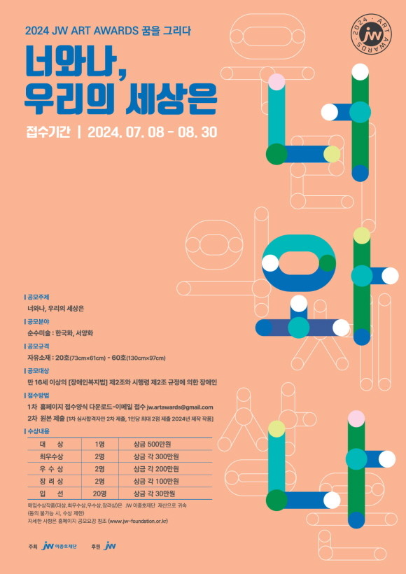 JW중외제약의 공익재단인 JW이종호재단은 장애 미술 작가들을 대상으로 '2024 JW 아트어워즈'를 개최한다.