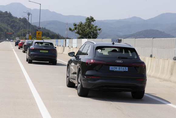 이에 날렵하고 세련된 디자인과 역동적인 주행성능, 최신 기술과 편의 기능을 모두 갖춘 '아우디 DNA'가 집약된 순수 전기 SUV 'Q8 e-트론'을 만났다. Q8 e-트론을 타고 청담동(서울 강남구)에서 출발해 경기도 여주 일대를 다녀오는 약 200㎞를 달렸다.