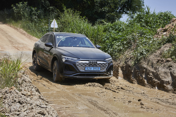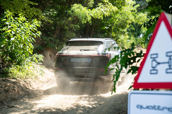 시동이 걸린 상태에서 운전자를 기다리는 Q8 e-트론은 자신이 지닌 본성을 숨기고 얌전한 척(?) 한다. Q8 e-트론은 출발과 동시에 앞으로 튕겨져 나간다는 말이 가장 잘 어울리는 자동차 중 하나다. 2670㎏의 무거운 공차중량에도 강력한 힘을 앞세워 순간적으로 치고 나간다. 그 속에서 차분함과 안정감은 당연히 잘 유지한다. 그리고 전기차인데 전기차 같지 않게 달리고, 힘이 넘치다 보니 주행 내내 여유로운 모습을 뽐낸다.