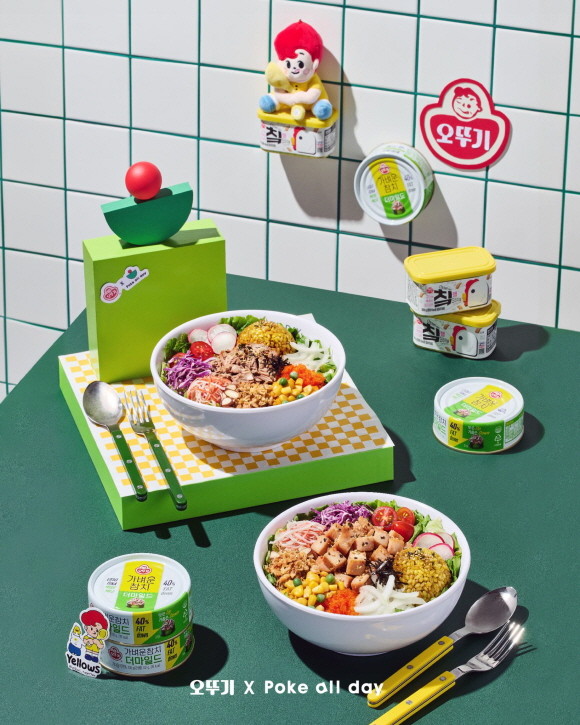 오뚜기가 하와이안 포케샐러드 브랜드 포케올데이와 협업해, 오뚜기 고단백 제품인 '가벼운 참치'와 '칰햄'을 활용한 포케 메뉴를 포케올데이 전 매장에서 내달 31일까지 선보인다. © 오뚜기