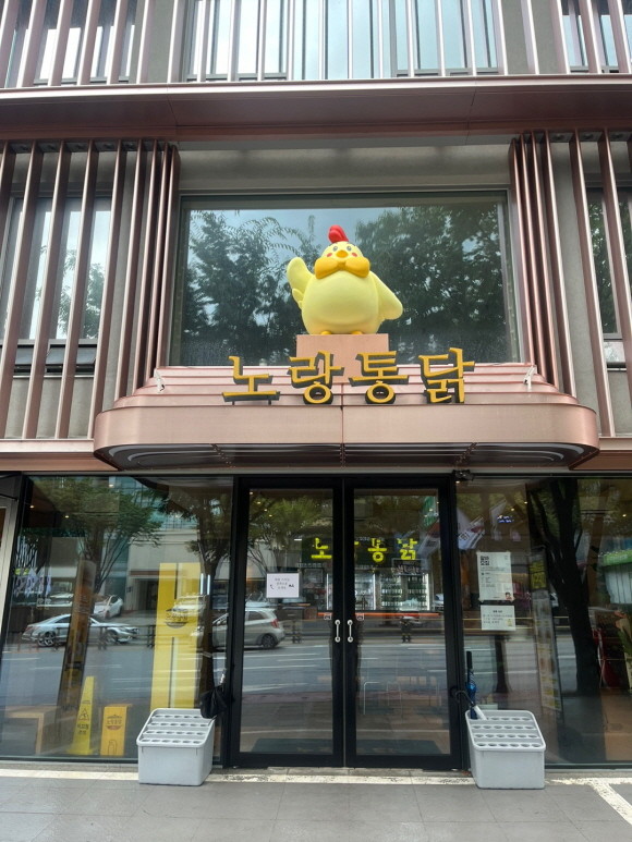 특히 정문 상단에 자리한 대형 캐릭터 모형은 마치 이 곳이 노랑통닭 본사라는 느낌이 들 정도로 웅장한 느낌을 주었다. 실제로 실내는 전반적인 우드풍으로 마치 브런치 카페를 연상시켰다. 특히 실내 공간 한 켠에 숍인숍으로 위치한 '일리(ILLY)' 커피존은 브런치 카페의 역할을 충실히 하고 있었다. 또한 점심시간의 특징을 고려해 1인석을 별도로 둔 것도 눈에 띄었다.