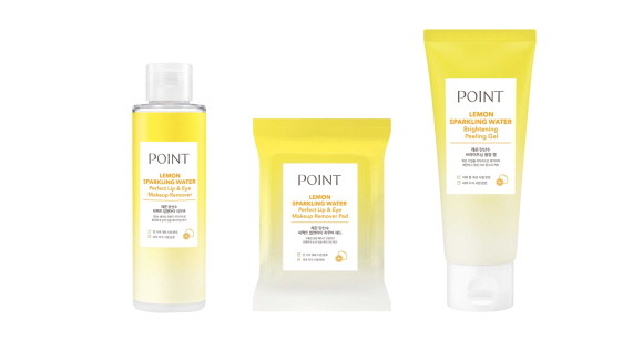 포인트 레몬 탄산수 클렌징 3종은 피부를 환하게 해주는 '레몬 추출물'과 피부의 보습 유지 및 점막 보호에 도움을 주는 '초정리 탄산수'를 함유해 세정 후에도 피부에 촉촉함을 주는 제품이다.