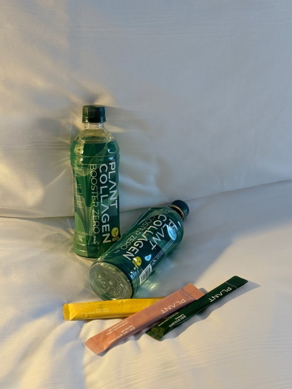 먼저, 플랜트 콜라겐 부스터 제로는 국내 최초로 4세대 식물성 콜라겐이 함유된 5-ZERO(0 칼로리, 0당류, 無 합성 감미료, 無 색소, 無 보존료) 음료로 육류나 어류에서 추출한 기존 콜라겐과 달리 식물성 원료만을 배합한 100% 비건 건강 음료 제품이다. 이와 함께 제공하는 플랜트 식물성 콜라겐 트라이얼 키트는 플랜트 식물성 콜라겐 콤부차 1포, 플랜트 식물성 콜라겐 비오틴 1포, 플랜트 식물성 콜라겐 비타민D 1포로 구성됐다.