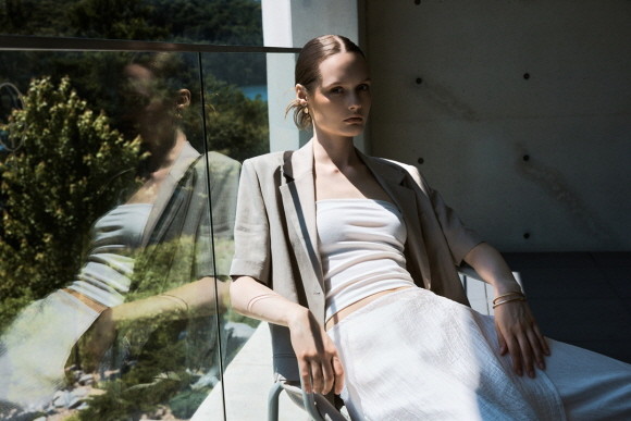 이번 컬렉션은 '여름에 만나는 우아함'이라는 메시지를 담아 자켓, 스커트, 나시, 블라우스, 팬츠 등 모노톤 및 뉴트럴톤 중심의 7가지 상품으로 구성됐다.