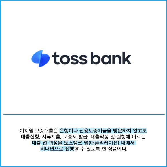 [카드] 토스뱅크, 인터넷전문은행 최초 신용보증기금 '이지원 대출' 출시